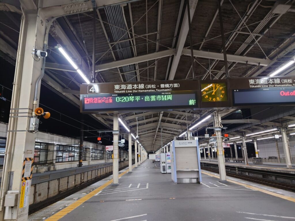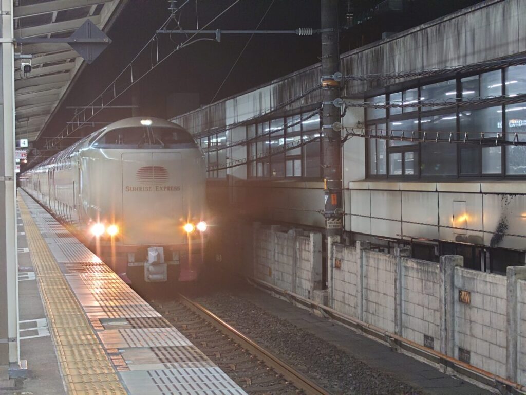 いつも愛媛マラソンのための移動はサンライズ瀬戸に乗ることにしています。深夜の静岡駅で乗車。