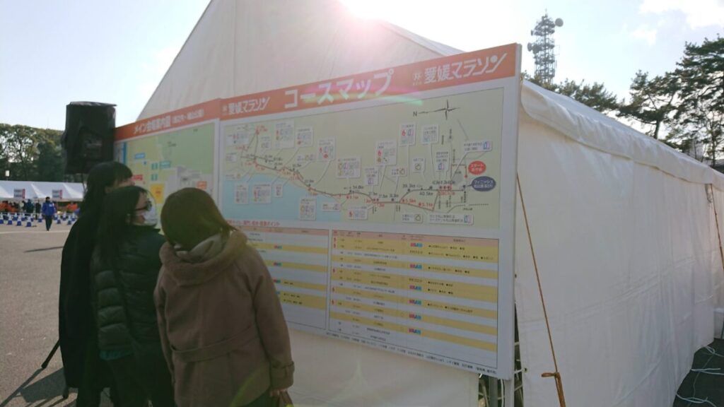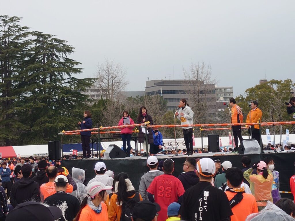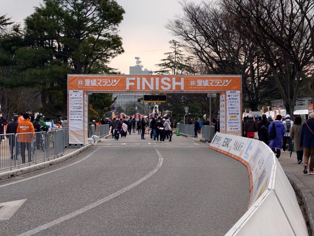 運よく当選し2年連続の出走となった愛媛マラソン。前年は残り数十秒でのギリギリゴールだっただけに今回は余裕のゴールをしたいところ、でしたが・・・・