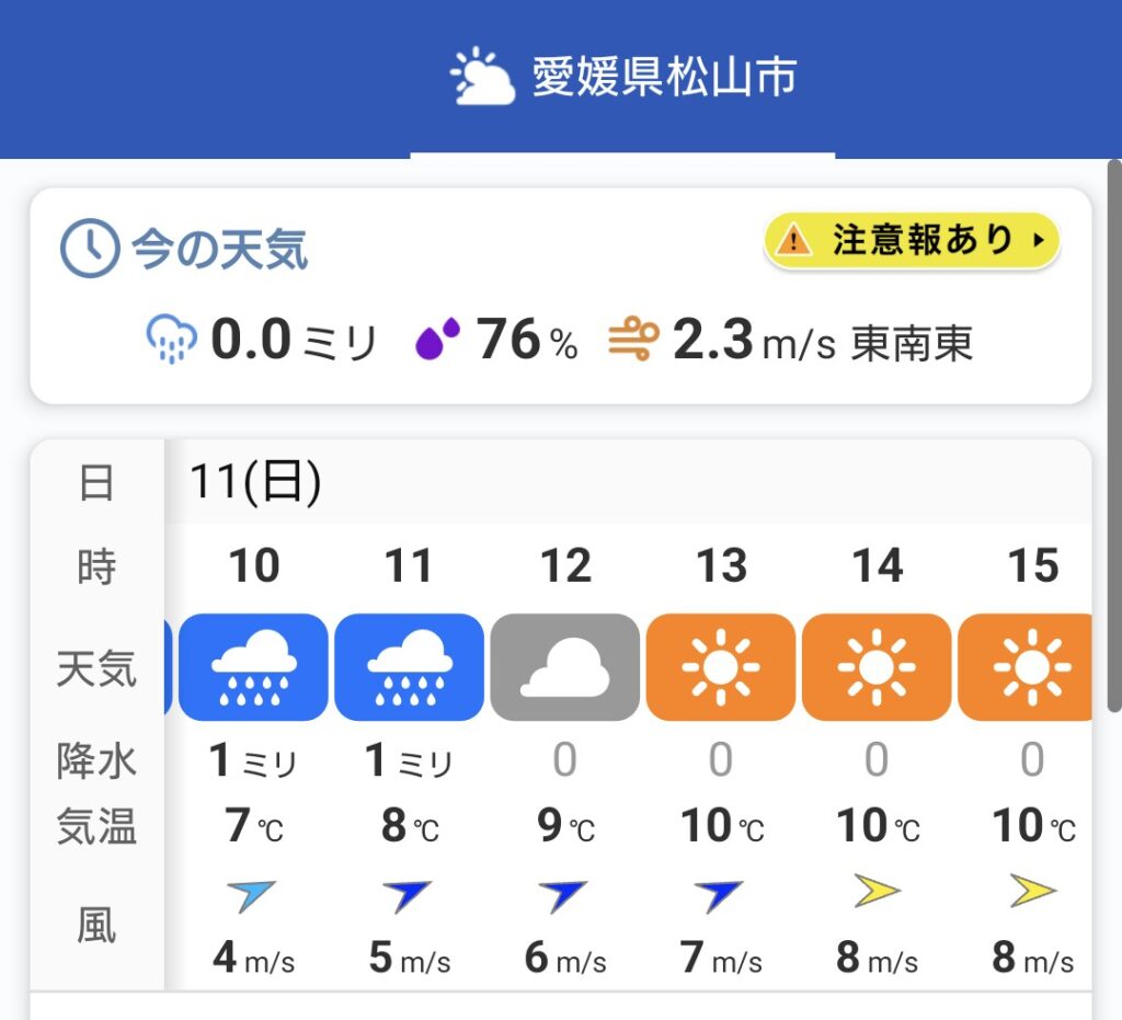 当日の天気予報。スタート時には小雨、その後天候が回復するという予報。気温も10℃前後とまずまず。ただこの時、風速が8m/s 予想になっているのを気づいておりませんでした。